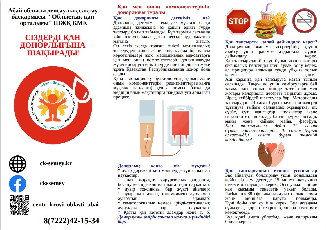 Қан мен оның компоненттерінің донорлығы туралы АДРЕС ул. Байтурсынова 27 ТЕЛЕФОН 8 (7222) 77 01 36 ПОЧТА mail@emhana-2.kz
