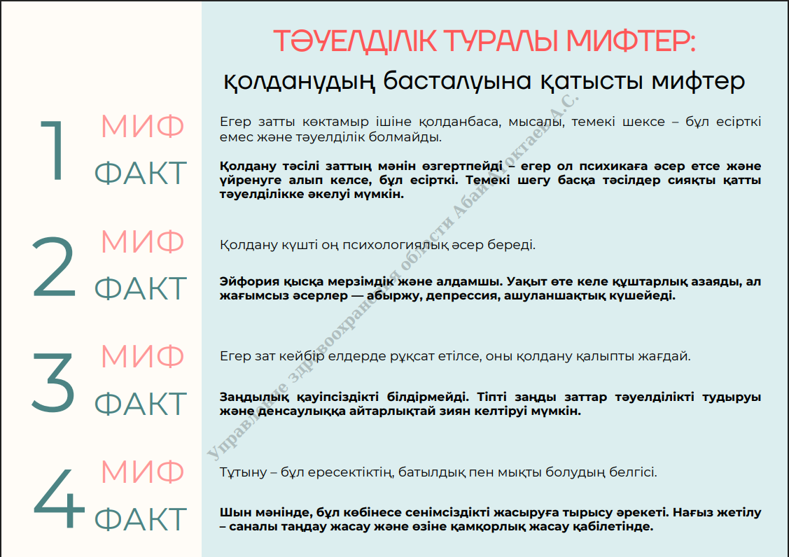ҚР ДСМ "Республикалық психикалық денсаулық ғылыми-практикалық орталығы" ШЖҚ РМК 2024-2026 жылдарға арналған ҚР халқына наркологиялық және токсикологиялық көмекті жетілдіру шараларын іске асыру жөніндегі Жол картасының 35-тармағын орындау шеңберінде ПБЗ тұтынудың профилактикасы бойынша ақпараттық-түсіндіру
